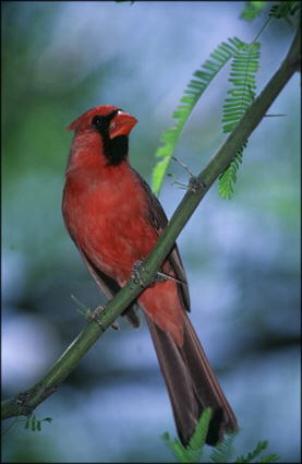 Beim Roten Kardinal singen auch die Weibchen während der Balzzeit, oft hört man ihr ausdauerndes Flöten in Vollmondnächten oder früh am Morgen.