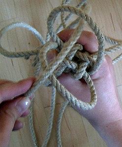 So sieht dann der Anfang aus. Jedes Seilende zeigt in eine andere Himmelsrichtung. |