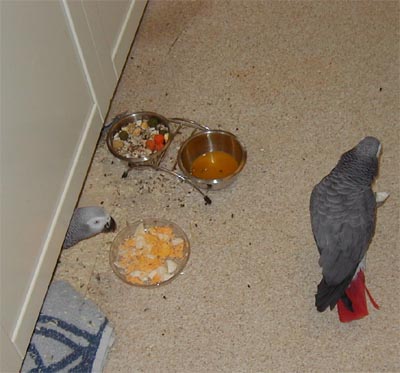 In dem Zimmer gibt es eine Nymphenseite und eine Graupapageienseite,